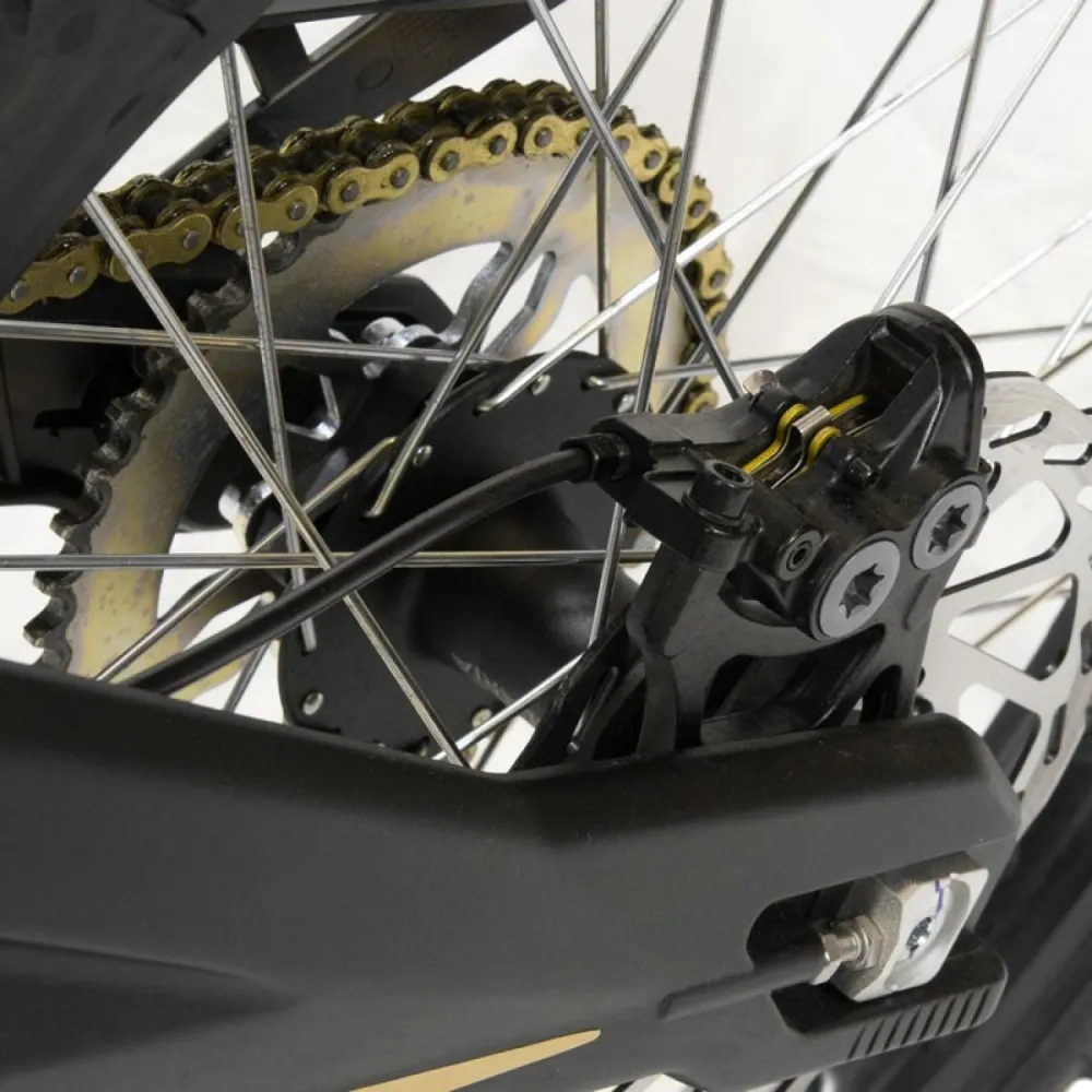 Электропитбайк оборудован современным движком с номинальной мощностью 6000 Вт для разгона до 80 км/час за короткое время. Оригинальная АКБ рассчитана на преодоление 100 км пути, при этом время зарядки составляет 4 часа. Для полной защиты батареи (38 Ач напряжением 60 В) от внешнего агрессивного воздействия и случайного попадания влаги, она защищена специальным корпусом. Лучшая устойчивость тс обеспечивается идеальным весом 63 кг. Спортивное сидение имеет анатомически правильную форму для большего комфорта поездок. Руль выставлен в соответствии с пожеланиями пользователей. Явным преимуществом является то, что техника полностью экологически безопасная. Закажите модель сейчас. Ждем ваших звонков и заказов для быстрой доставки.