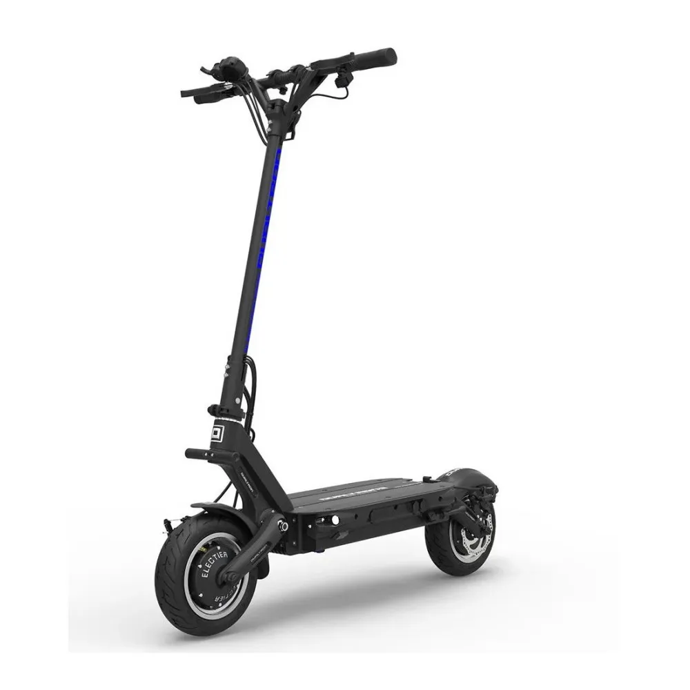 Оснащение самоката двумя мощными моторами по 800 Вт, позволяет ему быть быстрым и манёвренным, набирая до 60-65 км/ч. Для экономии заряда при спокойной езде можно отключить один мотор. В городском движении вы будите чувствовать себя уверенно, благодаря тормозу расположенному на пережнем и заднем колесах.