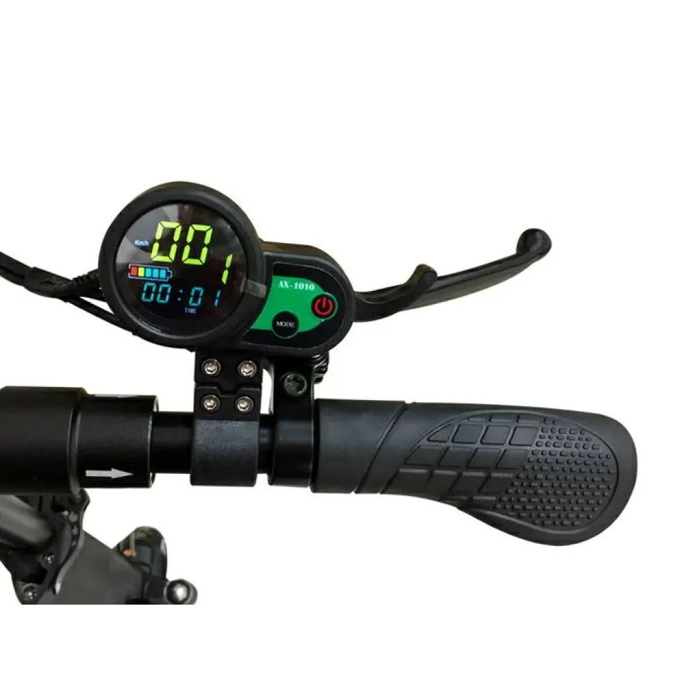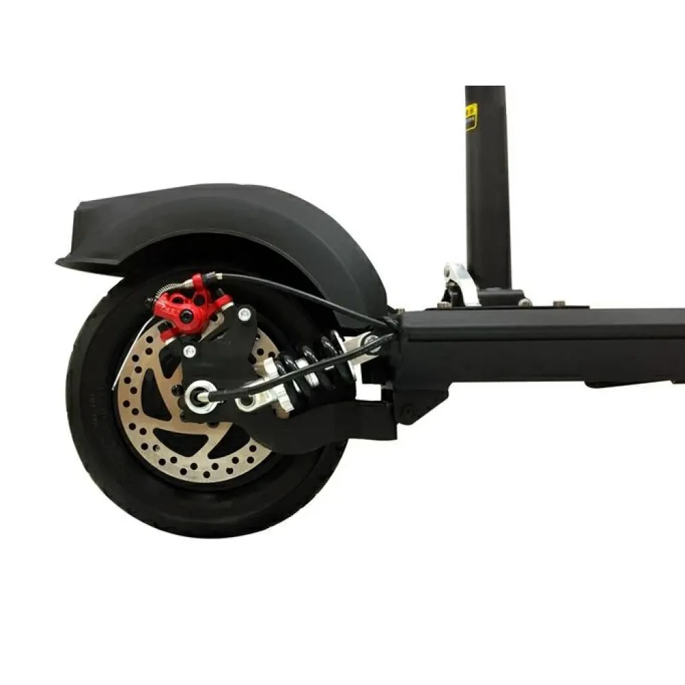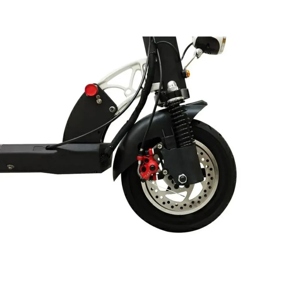 Пользователь быстро наберет максимальную скорость 40 км/час за короткое время. Запас хода рассчитан на прохождение 45 км пути без подзарядки, благодаря оснащению техники литий-ионным АКБ (13 Ач). Батарея легко заряжается в домашних условиях от бытовой розетки за 6 часов. Электросамокат легко выдержит 120 кг благодаря алюминиевой раме.