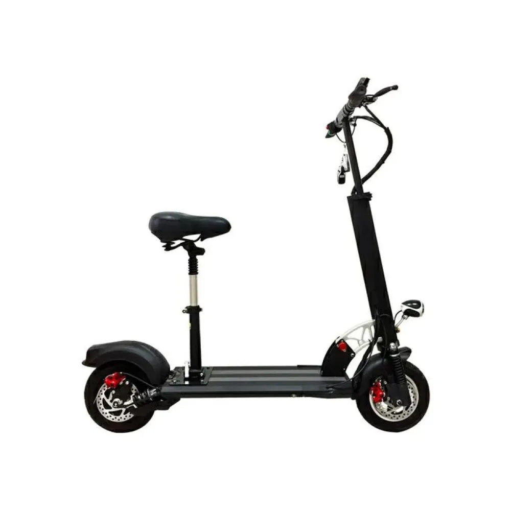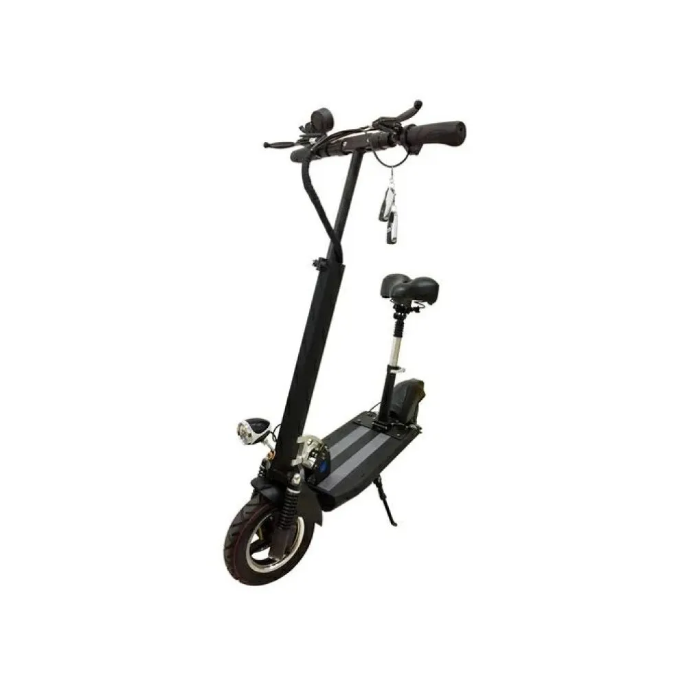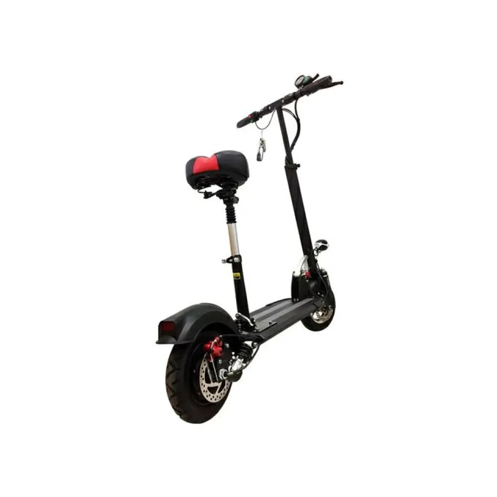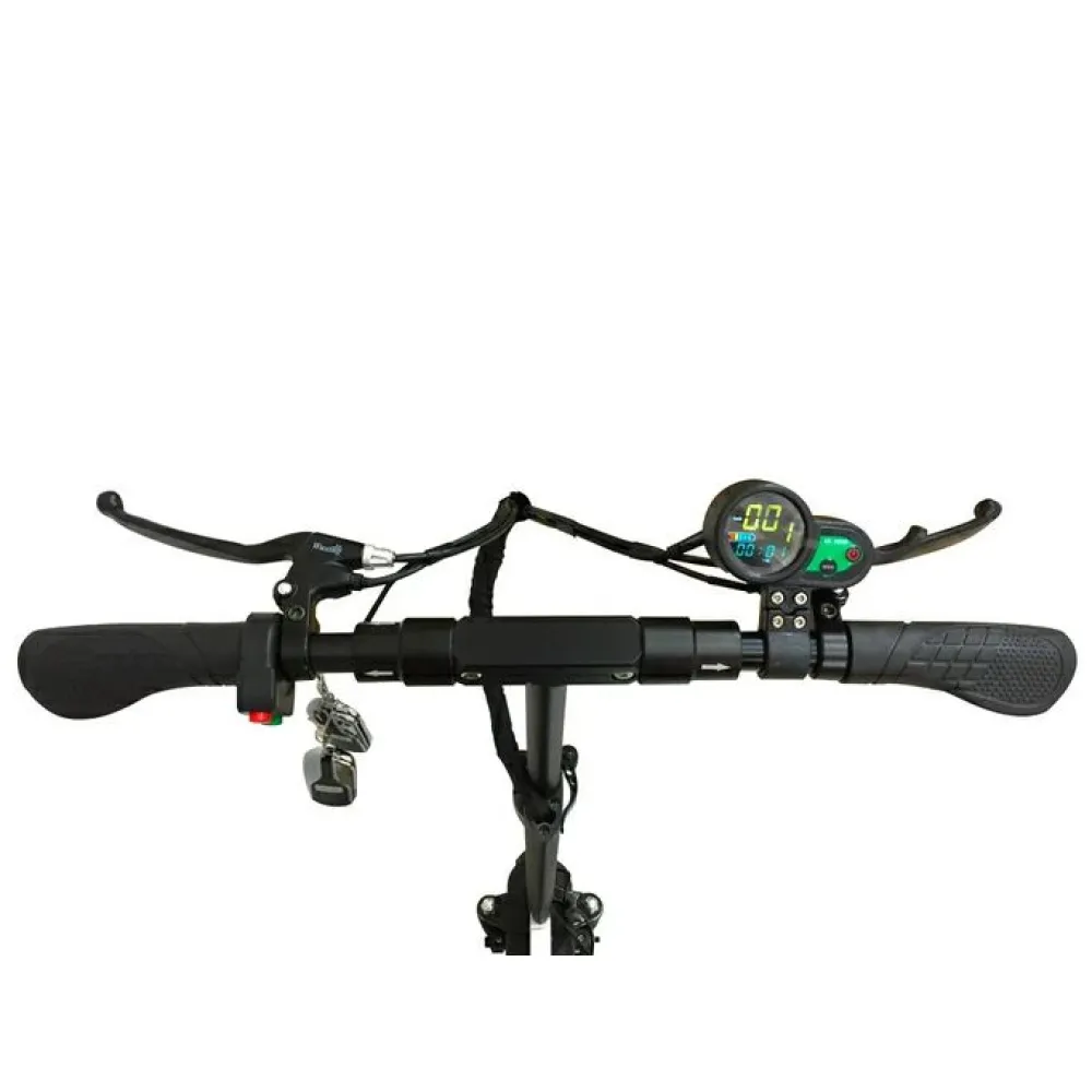 Пользователь быстро наберет максимальную скорость 40 км/час за короткое время. Запас хода рассчитан на прохождение 45 км пути без подзарядки, благодаря оснащению техники литий-ионным АКБ (13 Ач). Батарея легко заряжается в домашних условиях от бытовой розетки за 6 часов. Электросамокат легко выдержит 120 кг благодаря алюминиевой раме.