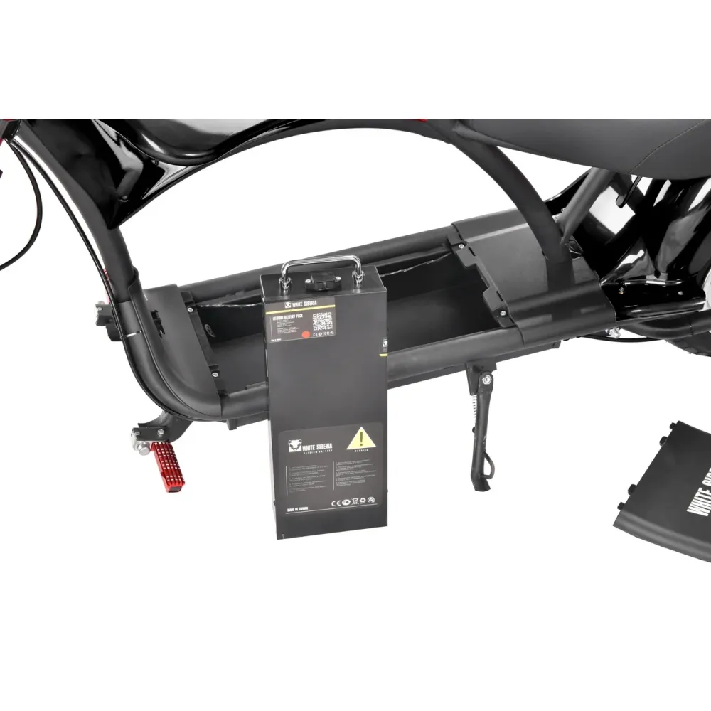 Модель оснащена 12-дюймовыми вездеходными колесами, позволяющими преодолевать препятствия по городской и непроходимой местности. Двигатель мощностью 3950 Вт допускает развитие скорости до 71 км/час. Мощное АКБ с полной зарядкой до 6 часов остается работоспособным до 40 км пути.