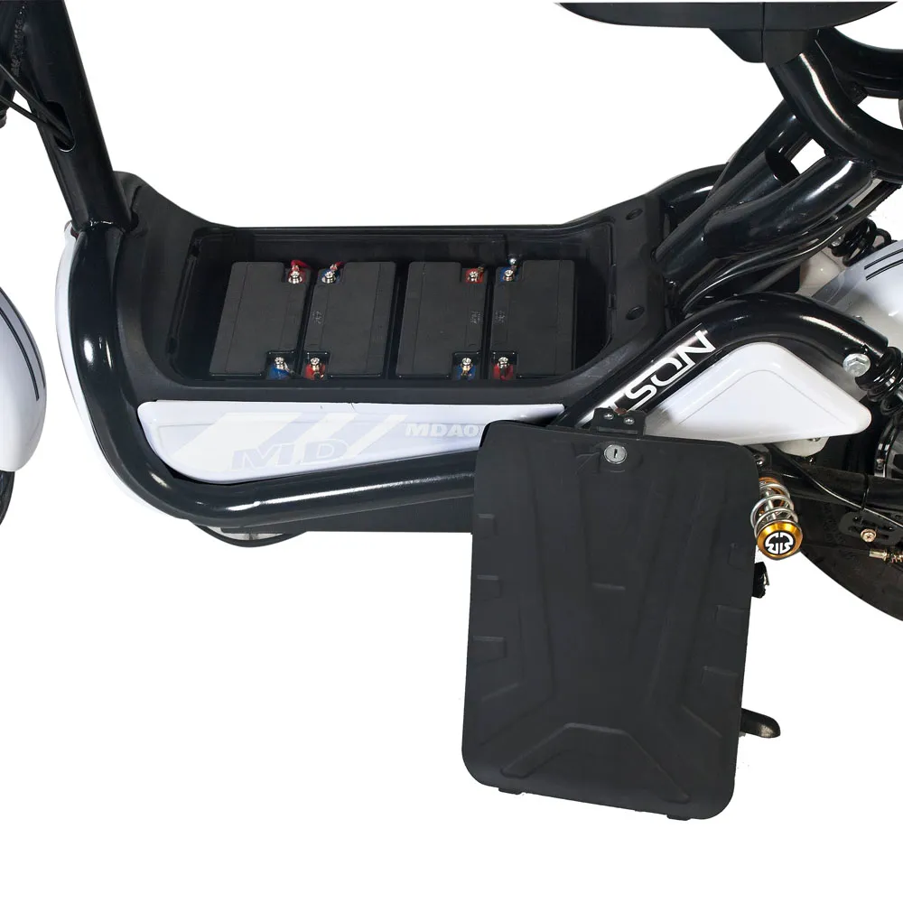 Электроскутер Jetson GS-450 – современный и быстрый вид транспорта. Его электромотор мощностью 450 Ватт позволяет развить скорость до 50 км/ч. Легкосъёмный литий-ионный аккумулятор ёмкостью в 20 Ач делает возможным преодолевать до 80 км на одном полном заряде. Зарядка такой ёмкой батареи довольно быстрая – всего лишь 4 часа! Мягкое, широкое седло из экологичной кожи, отличающейся прочностью и долговечностью, делает длительные поездки приятными для пользователя. Кроме того, в комплекте к скутеру идёт дополнительное сидение со спинкой для перевозки пассажиров. Jetson GS-450 имеет хорошую манёвренность, которую обеспечивают широкие 16-дюймовые колёса с высокопрофильной резиной. Удобство в управлении даёт устройство руля, на котором расположены кнопки переключения передач, включения и выключения света, рычажки тормоза и ручка газа с не проскальзывающим покрытием. Эффективные тормоза барабанного типа останавливают скутер крайне мягко, при этом не теряя отдачи. LED-фара и габаритные огни делают скутер заметным в светлое и тёмное время суток. Также скутер укомплектован зеркалами заднего вида, сигнализацией и багажником-корзиной.