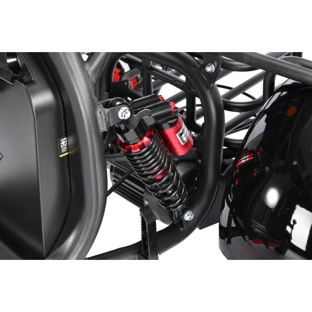 На руле находятся кнопки зажигания, переключения передач и управления. На WS-Pro 3000W Trike+ черный расположены два вида тормозов – гидравлические и дисковые, первые сзади, вторые спереди. Инженеры усилили систему амортизации, поэтому езда становится безопаснее и комфортнее.