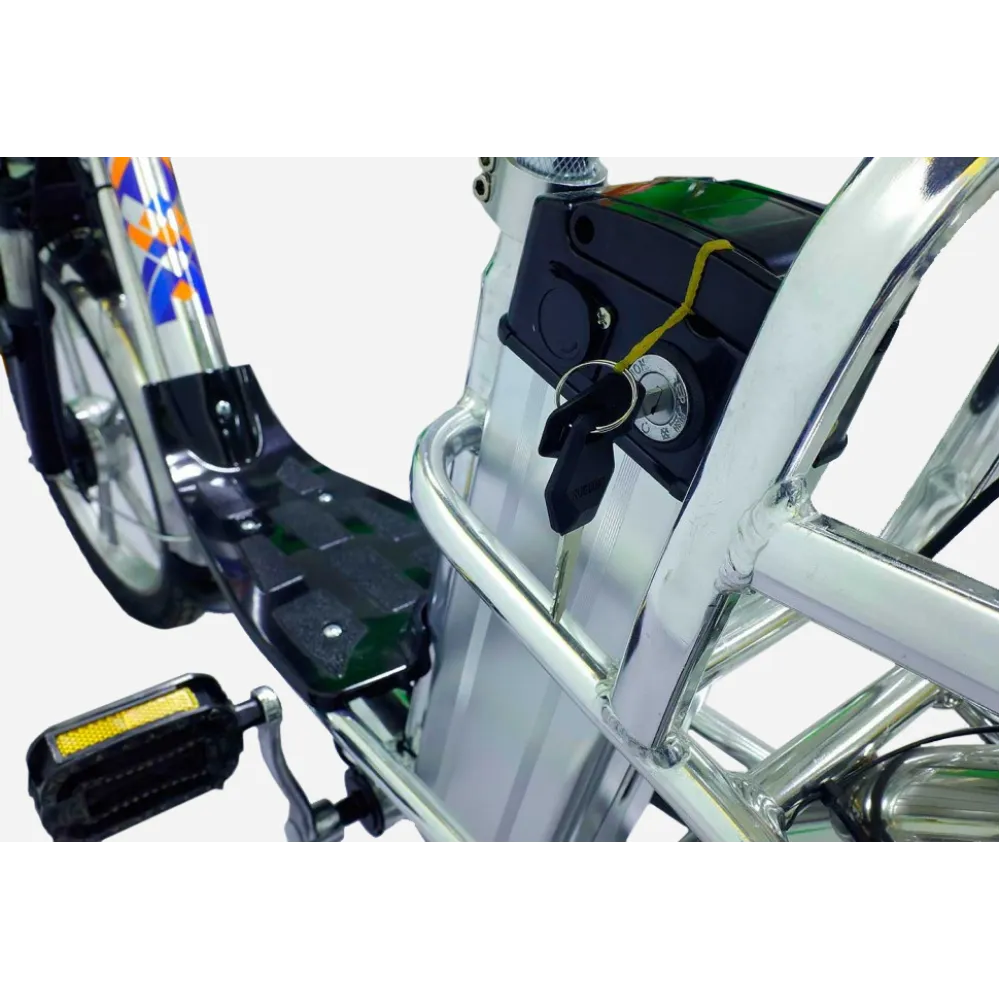 Характеристики электровелосипеда позволяют выдерживать вес до 150 кг. При мощности двигателя 350 Вт техника способна развивать скорость до 45 км/час и преодолевать на одной подзарядке 50 км пути. Емкая АКБ на 10 Аh размещена в удобном для райдера месте, не мешает при переходе на педальный режим. При езде на смешанном режиме ездок способен преодолевать расстояние в 1,5-2 раза больше.