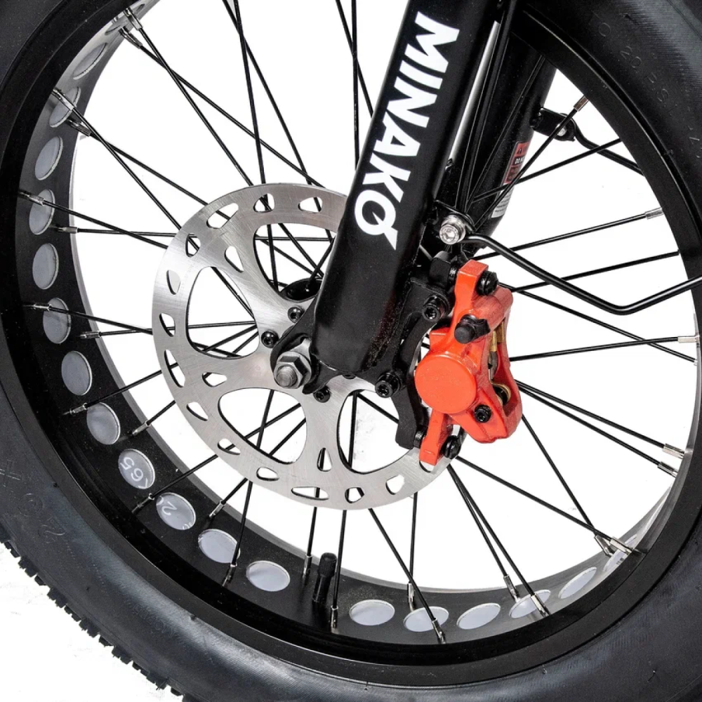 Гидравлические тормоза Minako F10 снижают возможность потери контроля и гарантируют надежность и безопасность. Гидравлический приводный механизм обеспечивает очень быстрый и мощный отклик, не требуя сервисного обслуживания и не вызывая преждевременного износа.