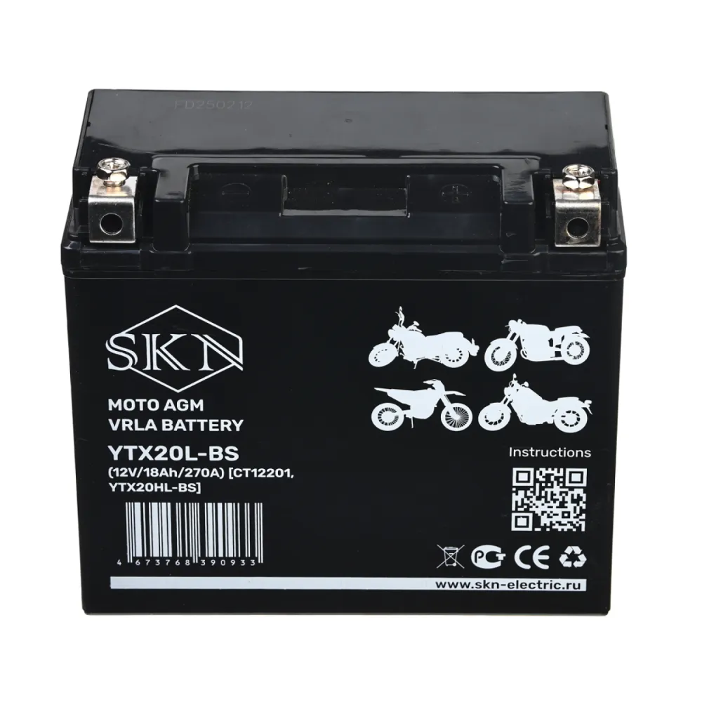 Аккумулятор стартерный для мототехники SKN YTX20L-BS (12V/18Ah/270A) [CT 12201, YTX20HL-BS]